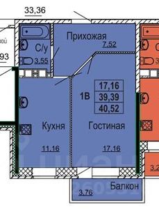 Площадь квартиры 39,2м² + балкон 3,7м² = 42,9м².