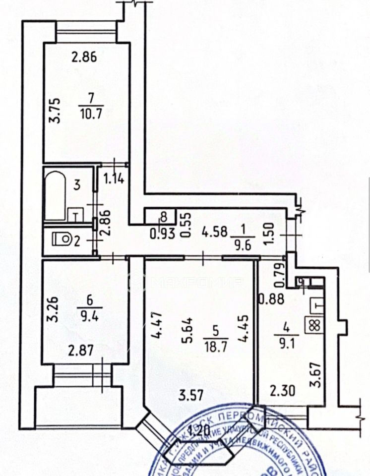Комнаты площадью 18,7м2, 10,7м2 и 9,4м2