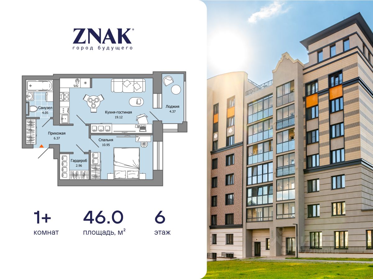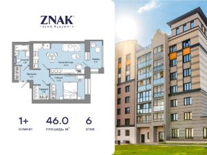 Продается 1-комнатная квартира площадью 46.00 кв. м. с предчистовой отделкой. Квартира находится в жилом комплексе комфорт-класса ZNAK, расположенном в районе ул. Берша.