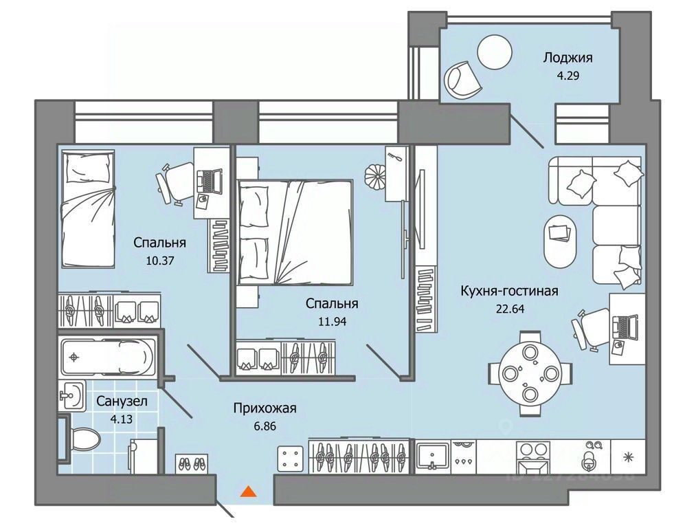 Продается 2-комнатная квартира площадью 58.00 кв. м. с предчистовой отделкой. Квартира находится в жилом комплексе комфорт-класса ZNAK, расположенном в районе ул. Берша.