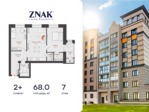 Продается 2-комнатная квартира площадью 68.00 кв. м. с предчистовой отделкой. Квартира находится в жилом комплексе комфорт-класса ZNAK, расположенном в районе ул. Берша.
