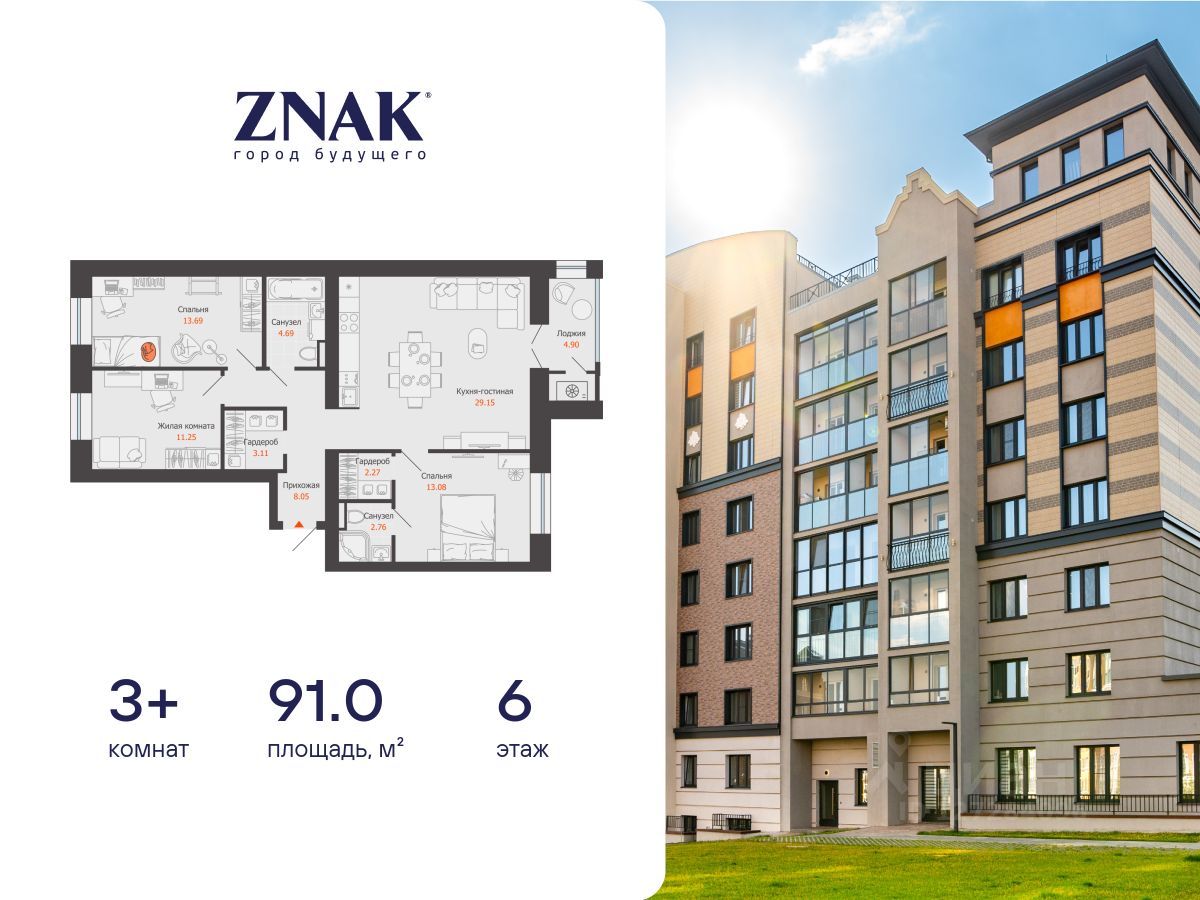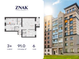 Продается 3-комнатная квартира площадью 91.00 кв. м. с предчистовой отделкой. Квартира находится в жилом комплексе комфорт-класса ZNAK, расположенном в районе ул. Берша.