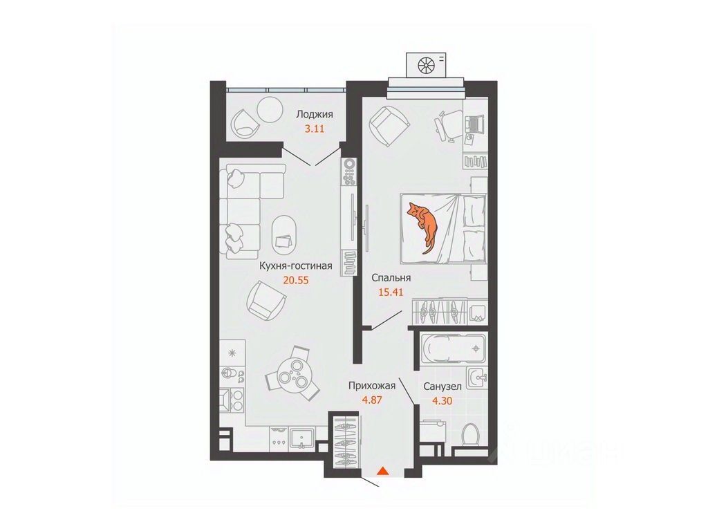 15,4 м²