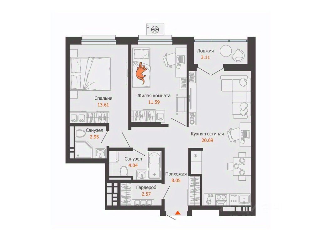 Старт продаж! Продается 2-комнатная квартира в 10 минутах от центра Ижевска, ул Холмогорова, площадью 65.00 кв. м. Квартира находится в жилом комплексе бизнес-класса "МИРЫ" от федерального застройщика "Железно".