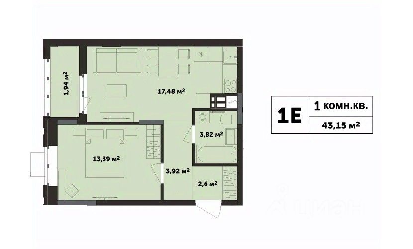 Продаётся 1-комнатная квартира в строящемся доме (Дом 5), срок сдачи: III-кв. 2026, общей площадью 43.15 кв.м., на 2 этаже. Жилой комплекс "Седьмое Небо" для тех, кто хочет чуть большего. Чуть большее - это умные жилые планировки. Активные дворы и стильная архитектура. И чуть, больше чем просто хорошее место - в двух минутах от улицы Ленина, но без дорожного шума, пыли и выхлопных газов.