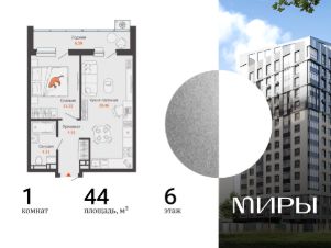 Продается 1-комнатная квартира в 10 минутах от центра Ижевска, ул Холмогорова, площадью 44.00 кв. м. Квартира находится в жилом комплексе бизнес-класса "МИРЫ" от федерального застройщика "Железно".