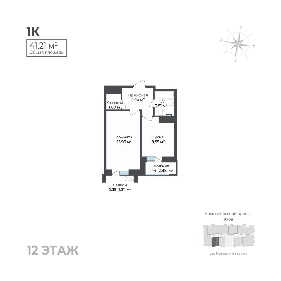 Общая площадь41,21 м²