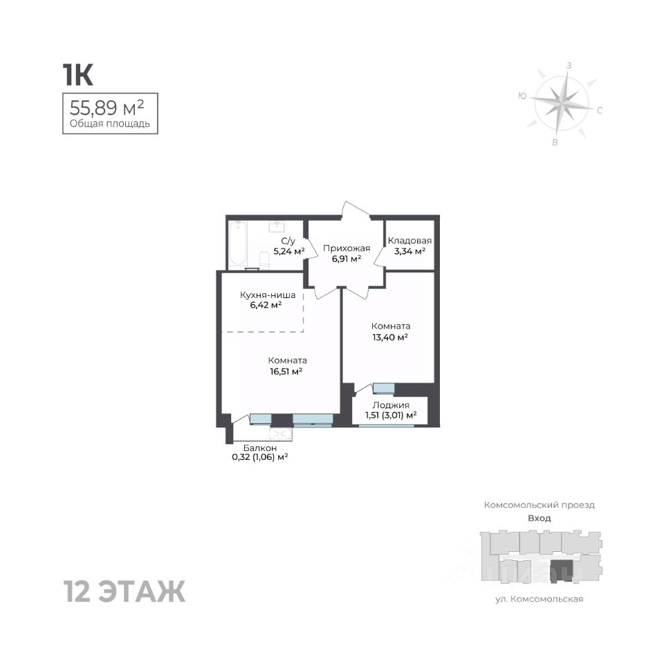 Общая площадь55,89 м²