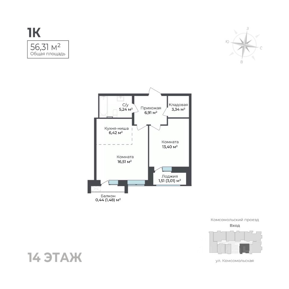 Общая площадь56,31 м²
