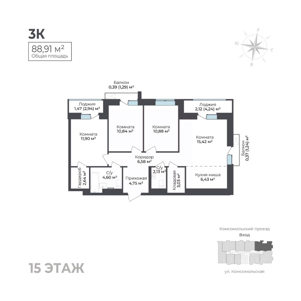 Общая площадь88,91 м²
