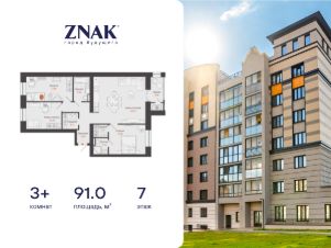 Продается 3-комнатная квартира площадью 91.00 кв. м. с предчистовой отделкой. Квартира находится в жилом комплексе комфорт-класса ZNAK, расположенном в районе ул. Берша.