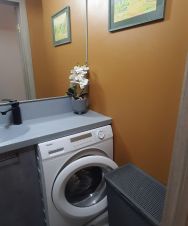 Интерьер квартиры выполнен по индивидуальному дизайнерскому проекту, благодаря чему пространство выглядит стильно и современно. Из окон открывается приятный вид на тихий двор, где можно наслаждаться покоем после насыщенного дня. Наличие балкона добавляет дополнительное пространство для отдыха и возможность организовать небольшой зелёный уголок.