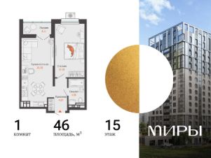 Продается 1-комнатная квартира в 10 минутах от центра Ижевска, ул Холмогорова, площадью 46.00 кв. м. Квартира находится в жилом комплексе бизнес-класса "МИРЫ" от федерального застройщика "Железно".