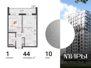 Продается 1-комнатная квартира в 10 минутах от центра Ижевска, ул Холмогорова, площадью 44.00 кв. м. Квартира находится в жилом комплексе бизнес-класса "МИРЫ" от федерального застройщика "Железно".