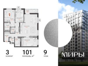 Продается 3-комнатная квартира в 10 минутах от центра Ижевска, ул Холмогорова, площадью 101.00 кв. м. Квартира находится в жилом комплексе бизнес-класса "МИРЫ" от федерального застройщика "Железно".