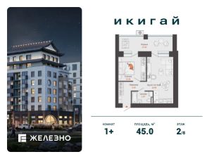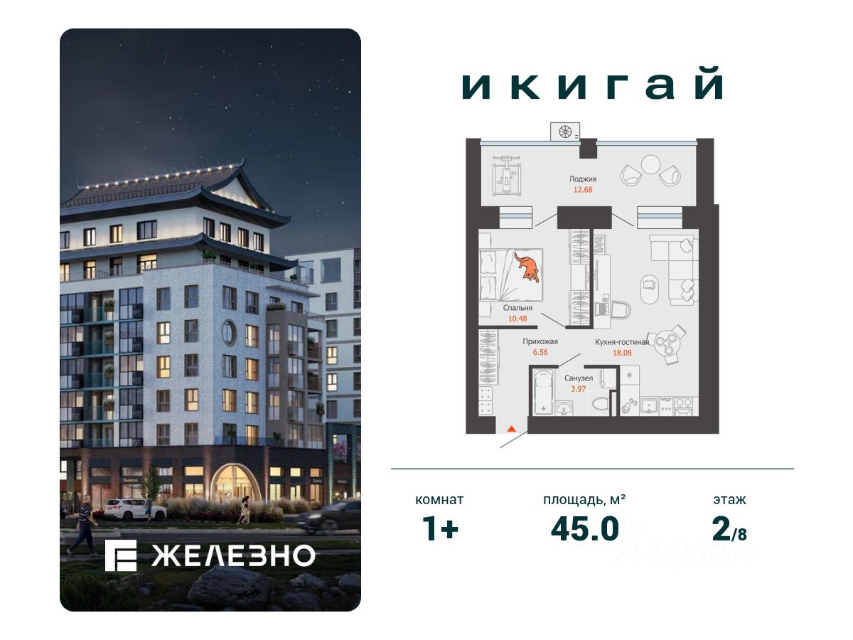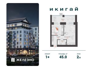 Продается 1-комнатная квартира площадью 45.00 кв. м с предчистовой отделкой. Квартира находится в жилом комплексе комфорт+ "Икигай" от федерального девелопера "Железно".