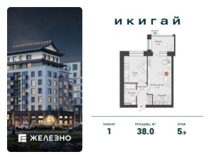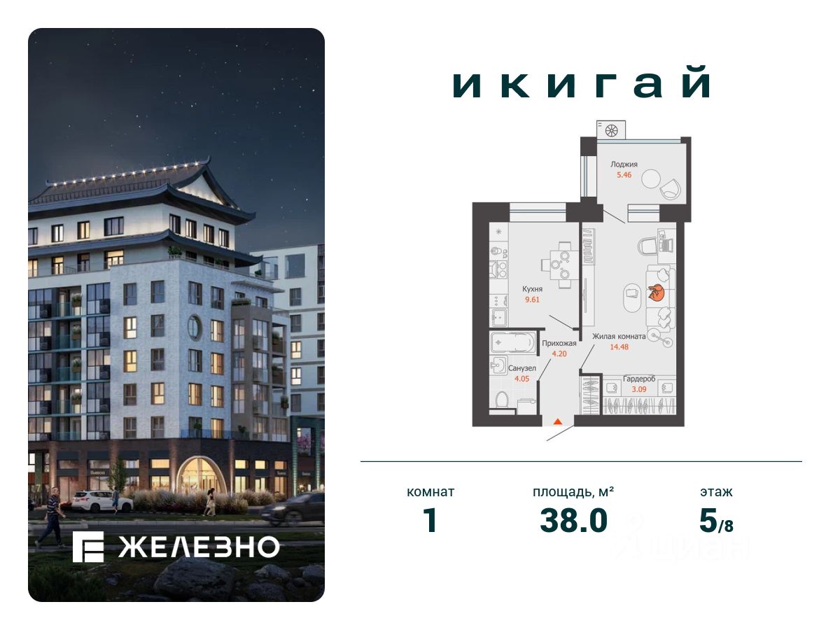 Продается 1-комнатная квартира площадью 38.00 кв. м с предчистовой отделкой. Квартира находится в жилом комплексе комфорт+ "Икигай" от федерального девелопера "Железно".