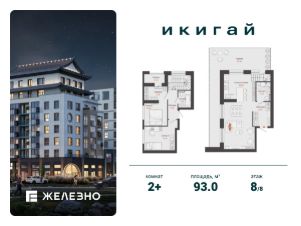 Продается 2-комнатная квартира площадью 93.00 кв. м. Квартира находится в жилом комплексе комфорт+ "Икигай" от федерального девелопера "Железно".