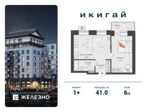 Продается 1-комнатная квартира площадью 41.00 кв. м с чистовой отделкой. Квартира находится в жилом комплексе комфорт+ "Икигай" от федерального девелопера "Железно".