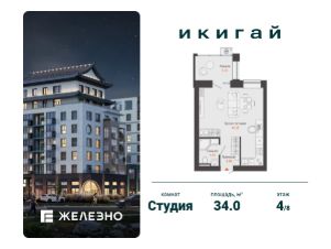 Продается студия площадью 34.00 кв. м с предчистовой отделкой. Квартира находится в жилом комплексе комфорт+ "Икигай" от федерального девелопера "Железно".