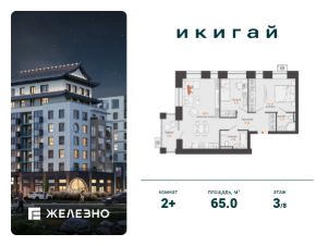 Продается 2-комнатная квартира площадью 65.00 кв. м с предчистовой отделкой. Квартира находится в жилом комплексе комфорт+ "Икигай" от федерального девелопера "Железно".