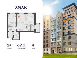 Продается 2-комнатная квартира площадью 69.00 кв. м. Квартира находится в жилом комплексе комфорт-класса ZNAK, расположенном в районе ул. Берша.