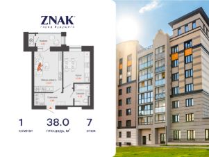 Продается 1-комнатная квартира площадью 38.00 кв. м. с предчистовой отделкой. Квартира находится в жилом комплексе комфорт-класса ZNAK, расположенном в районе ул. Берша.