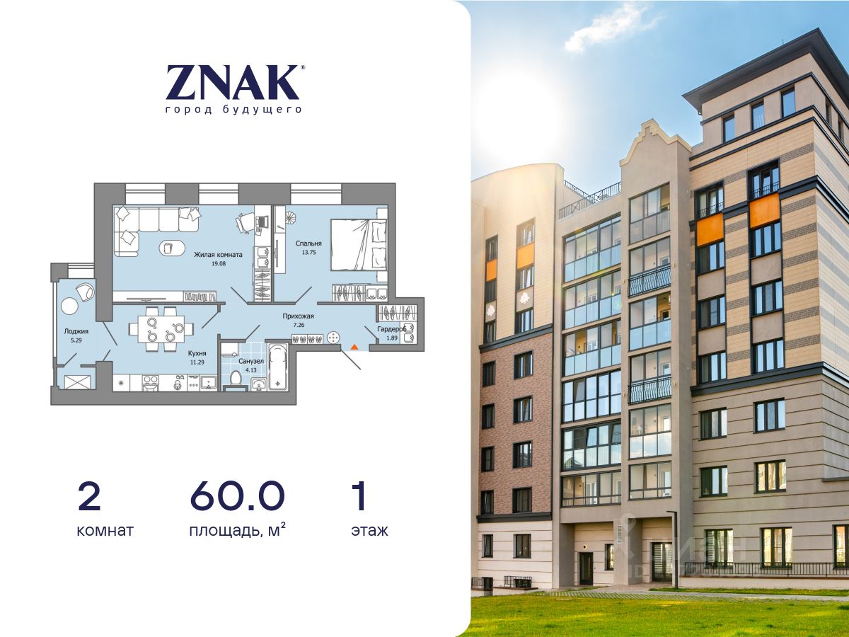 Продается 2-комнатная квартира площадью 60.00 кв. м. с предчистовой отделкой. Квартира находится в жилом комплексе комфорт-класса ZNAK, расположенном в районе ул. Берша.