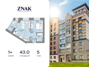 Продается 1-комнатная квартира площадью 43.00 кв. м. с предчистовой отделкой. Квартира находится в жилом комплексе комфорт-класса ZNAK, расположенном в районе ул. Берша.