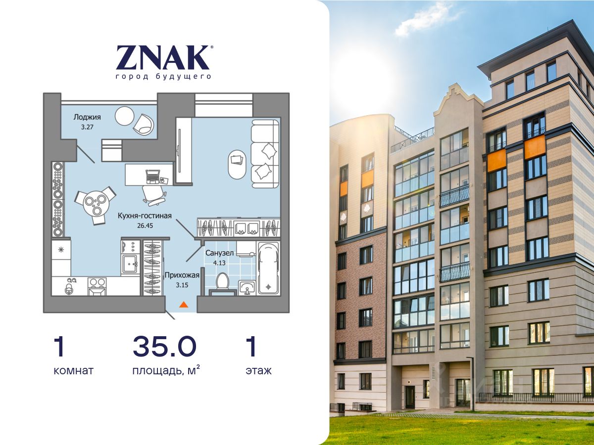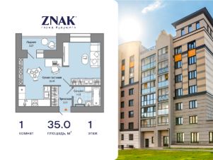 Продается студия площадью 35.00 кв. м. с предчистовой отделкой. Квартира находится в жилом комплексе комфорт-класса ZNAK, расположенном в районе ул. Берша.