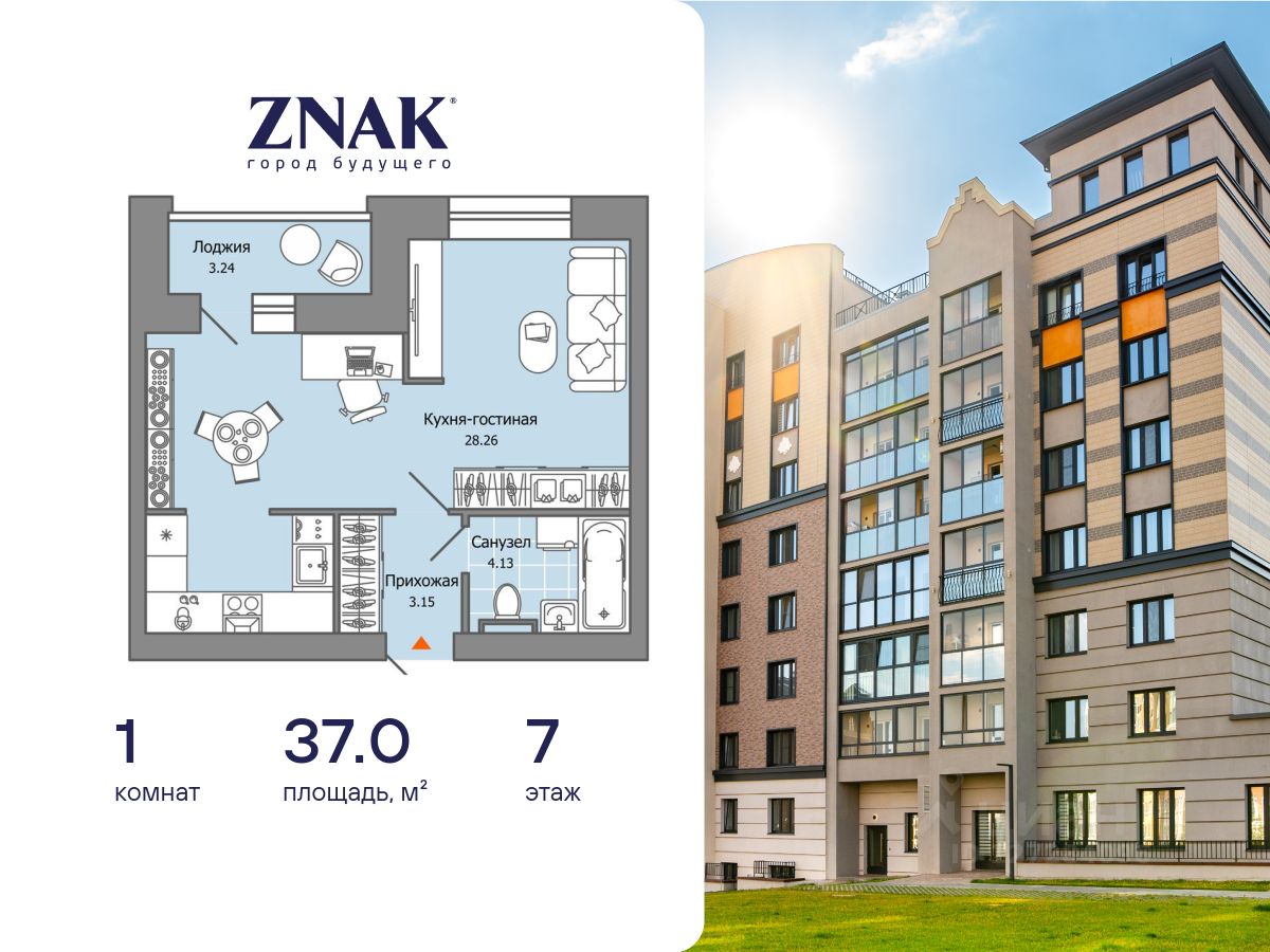 Продается студия площадью 37.00 кв. м. с предчистовой отделкой. Квартира находится в жилом комплексе комфорт-класса ZNAK, расположенном в районе ул. Берша.