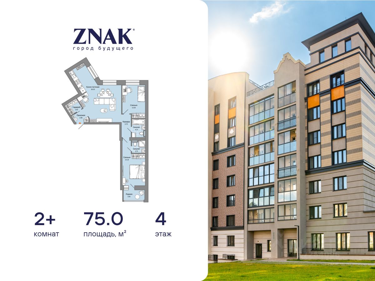 Продается 2-комнатная квартира площадью 75.00 кв. м. с предчистовой отделкой. Квартира находится в жилом комплексе комфорт-класса ZNAK, расположенном в районе ул. Берша.