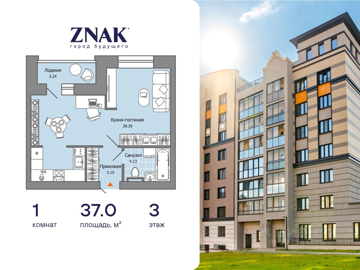Продается студия площадью 37.00 кв. м. с предчистовой отделкой. Квартира находится в жилом комплексе комфорт-класса ZNAK, расположенном в районе ул. Берша.