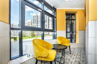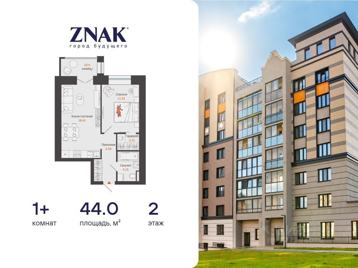 Продается 1-комнатная квартира площадью 44.00 кв. м. с предчистовой отделкой. Квартира находится в жилом комплексе комфорт-класса ZNAK, расположенном в районе ул. Берша.