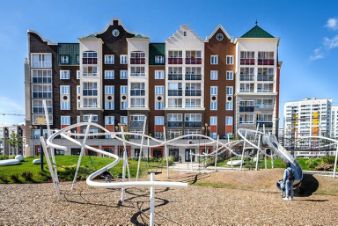 Площадки для малышей и подростков защищены мягким покрытием, а для тихого отдыха жителей размещаются лаунж-пространства, где каждый может расслабиться и полностью восстановить силы. Активные и тихие места находятся на комфортном расстоянии и не мешают друг другу.
