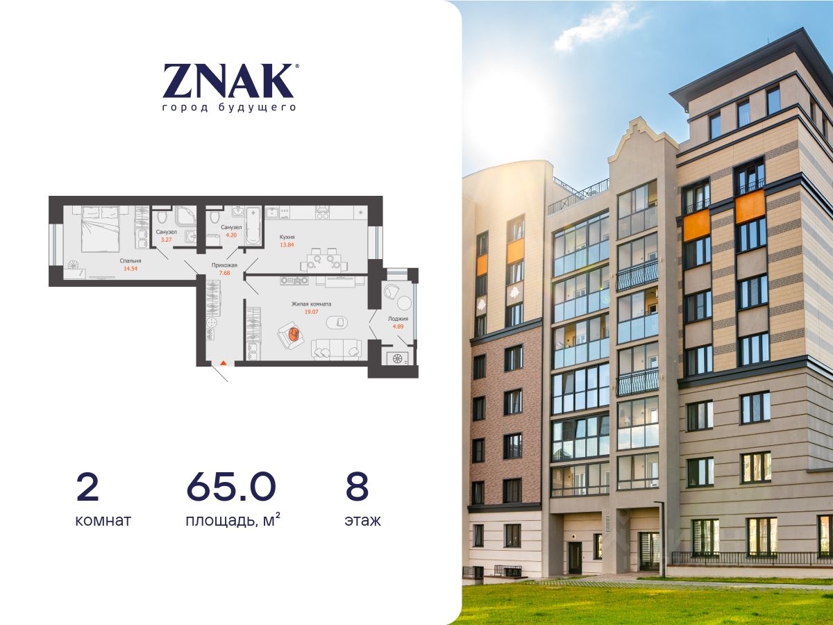 Продается 2-комнатная квартира площадью 65.00 кв. м. с предчистовой отделкой. Квартира находится в жилом комплексе комфорт-класса ZNAK, расположенном в районе ул. Берша.