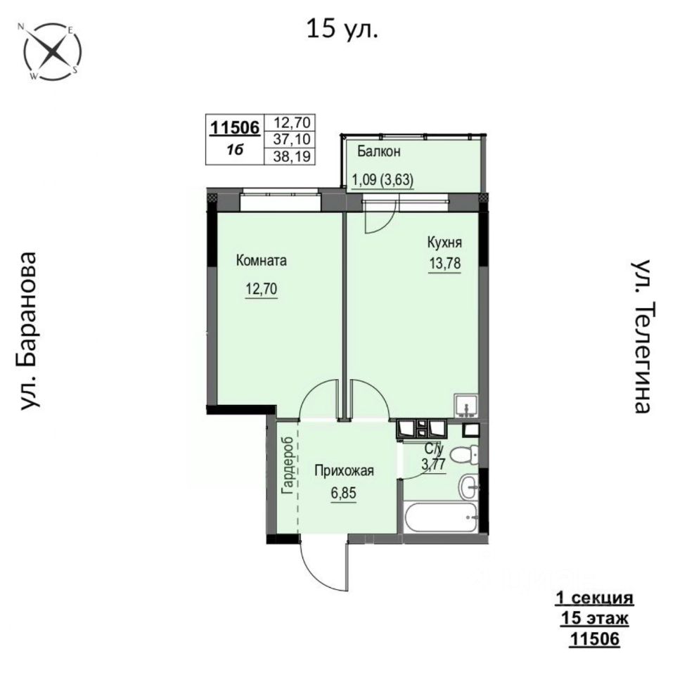 Продаётся 1-комнатная квартира в строящемся доме (Дом 2), срок сдачи: III-кв. 2026, общей площадью 38.19 кв.м., на 15 этаже. Жилой комплекс "Успенский" представляет собой 22-этажный дом премьер-класса, расположенный по улице Телегина в Ленинском районе города Ижевска.