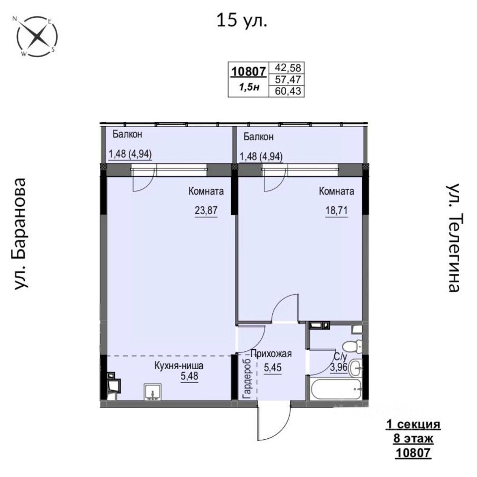 Продаётся 2-комнатная квартира в строящемся доме (Дом 2), срок сдачи: III-кв. 2026, общей площадью 60.43 кв.м., на 8 этаже. Жилой комплекс "Успенский" представляет собой 22-этажный дом премьер-класса, расположенный по улице Телегина в Ленинском районе города Ижевска.
