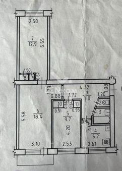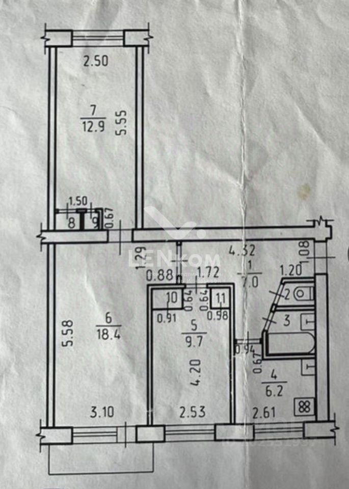 Комнаты: 3 изолированные (9,7 м², 12,9 м², 18,4 м²) — просторные и очень светлые!