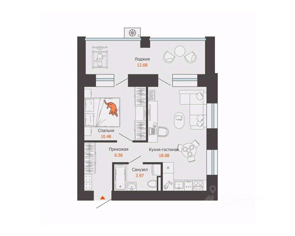Продается 1-комнатная квартира площадью 45.00 кв. м с предчистовой отделкой. Квартира находится в жилом комплексе комфорт+ "Икигай" от федерального девелопера "Железно".