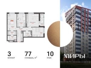 Продаётся 3-комнатная квартира квартира в 10 минутах от центра Ижевска, ул Холмогорова, площадью 77.00 кв. м. Квартира находится в жилом комплексе бизнес-класса "МИРЫ" от федерального застройщика "Железно".