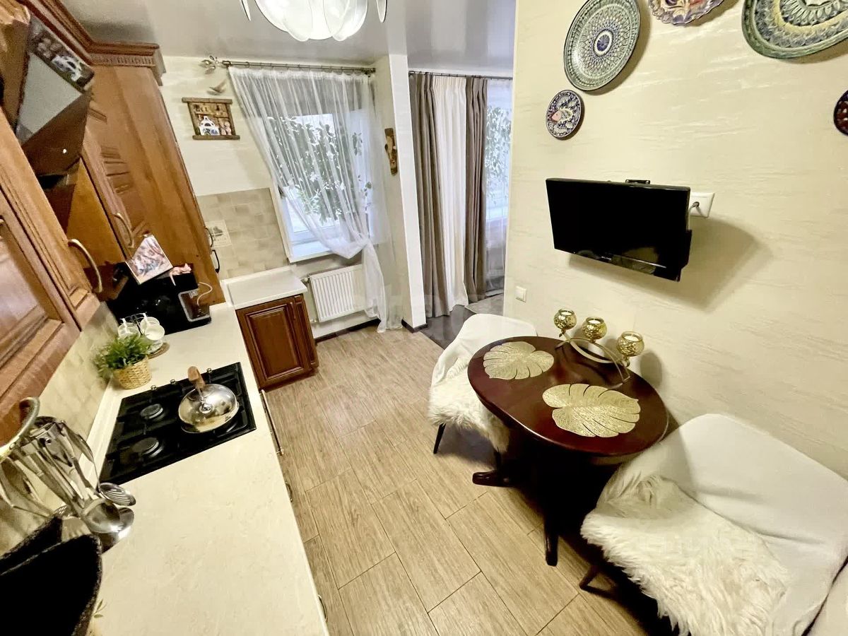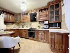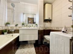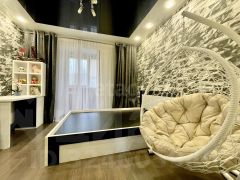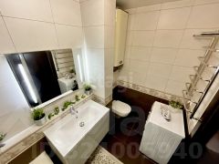 В квартире сделан качественный ремонт, везде натяжные потолки, ламинат хорошего качества, все зоны пола с керамогранитов с подогревом, ванная комната в кафеле.