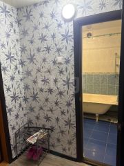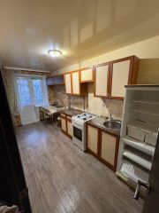 Обновленный ремонт включает натяжные потолки, свежие обои и линолеум, создавая готовое для комфортного проживания пространство. Высокие потолки и большие окна наполняют квартиру естественным светом, а продуманная планировка эффективно зонирует площадь. В комнате остается большой встроенный шкаф-купе для хранения вещей, на кухне установлен многофункциональный гарнитур с техникой, включая плиту и холодильник, а в санузле уложена качественная плитка.