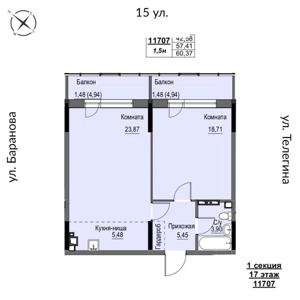 Продаётся 2-комнатная квартира в строящемся доме (Дом 2), срок сдачи: III-кв. 2026, общей площадью 60.37 кв.м., на 17 этаже. Жилой комплекс "Успенский" представляет собой 22-этажный дом премьер-класса, расположенный по улице Телегина в Ленинском районе города Ижевска.