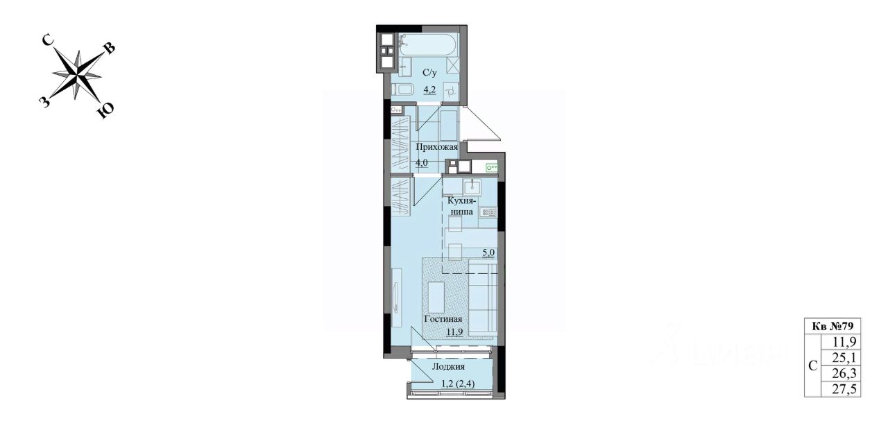 Общая площадь26,3 м²