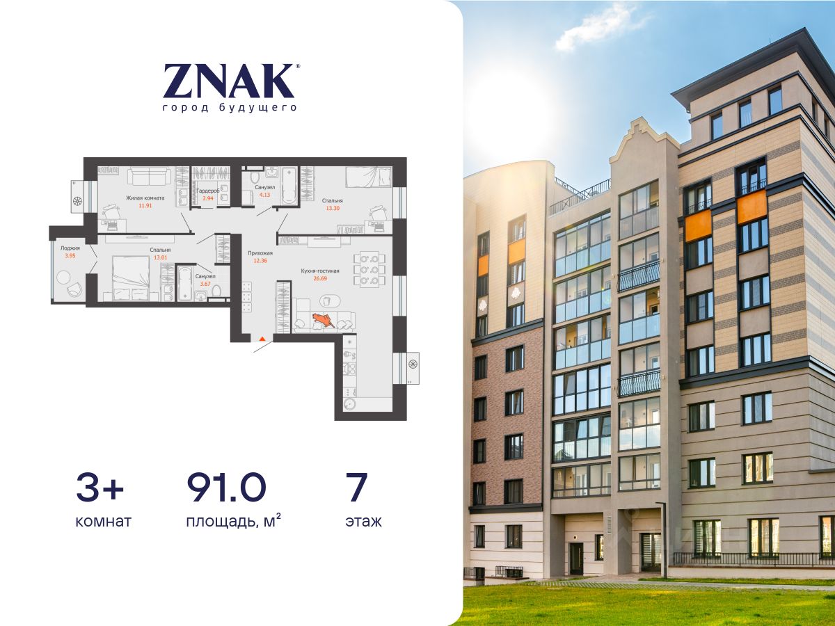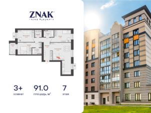 Продается 3-комнатная квартира площадью 91.00 кв. м. с предчистовой отделкой. Квартира находится в жилом комплексе комфорт-класса ZNAK, расположенном в районе ул. Берша.
