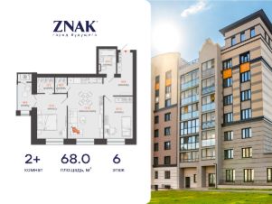 Продается 2-комнатная квартира площадью 68.00 кв. м. с предчистовой отделкой. Квартира находится в жилом комплексе комфорт-класса ZNAK, расположенном в районе ул. Берша.