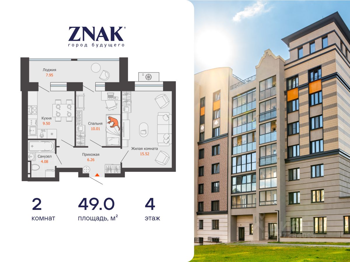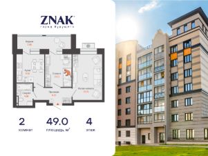 Продается 2-комнатная квартира площадью 49.00 кв. м. с предчистовой отделкой. Квартира находится в жилом комплексе комфорт-класса ZNAK, расположенном в районе ул. Берша.