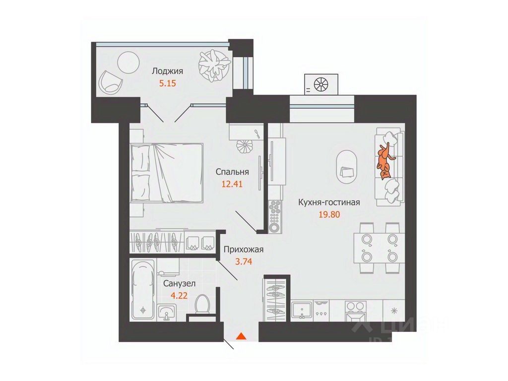 Продается 1-комнатная квартира площадью 43.00 кв. м. с предчистовой отделкой. Квартира находится в жилом комплексе комфорт-класса ZNAK, расположенном в районе ул. Берша.