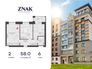 Продается 2-комнатная квартира площадью 58.00 кв. м. с предчистовой отделкой. Квартира находится в жилом комплексе комфорт-класса ZNAK, расположенном в районе ул. Берша.